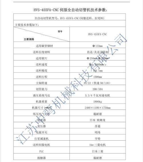 全自动切管机型号:HVS-455FA-CNC(伺服送料、拉尾料)