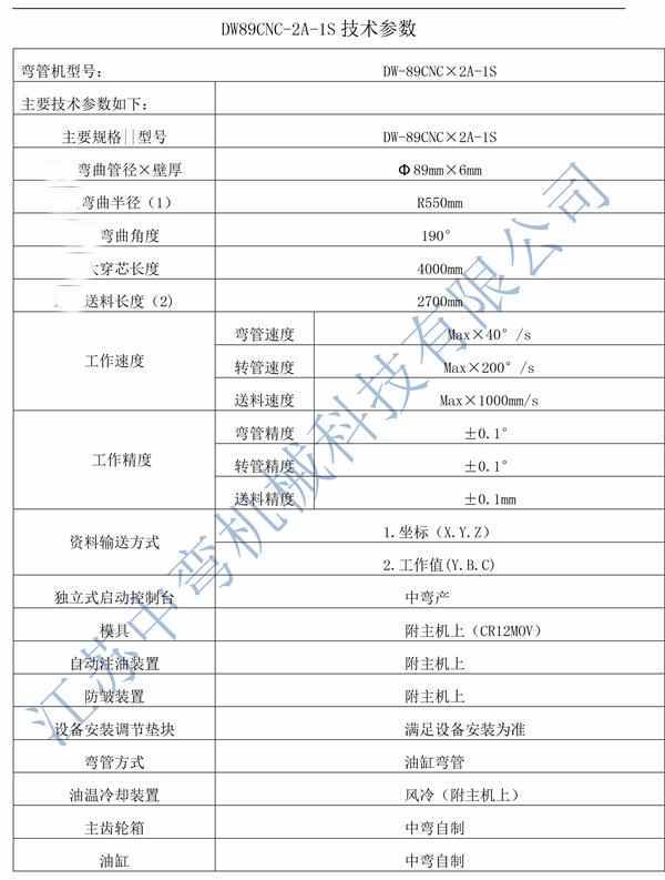 | 主 要 规 格 | 单 位 | DW89CNC-2A-1S | 备 注 |